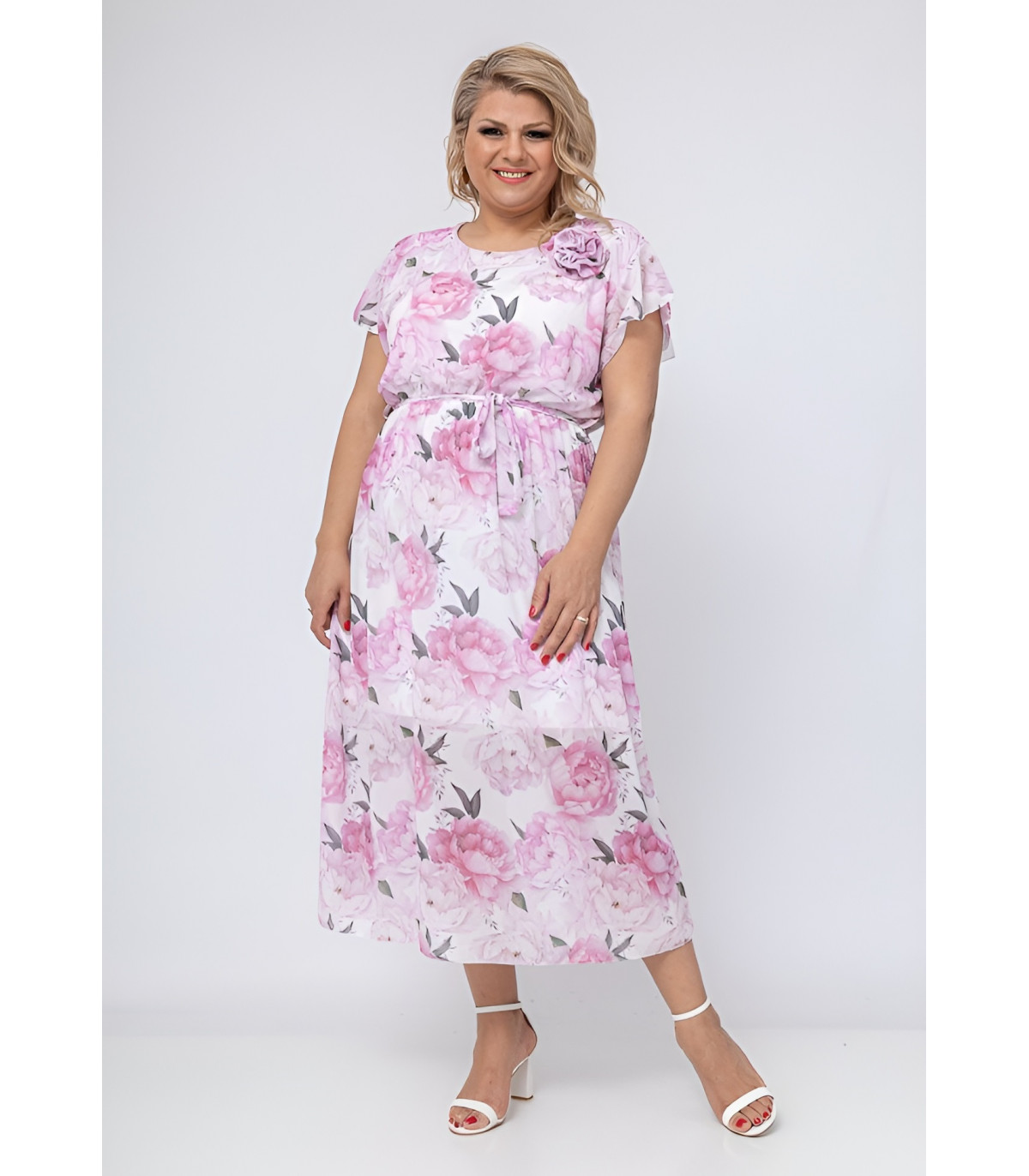 Upea valkoinen XL kukkamekko vyöllä on täydellinen lisä jokaisen muodokkaan naisen vaatekaappiin. Sen ajaton tyyli, miellyttävä istuvuus ja monikäyttöisyys takaavat, että löydät sille käyttöä monissa eri tilanteissa. Tilaa omasi nyt ja koe italialaisen muodin eleganssi omassa koossasi!