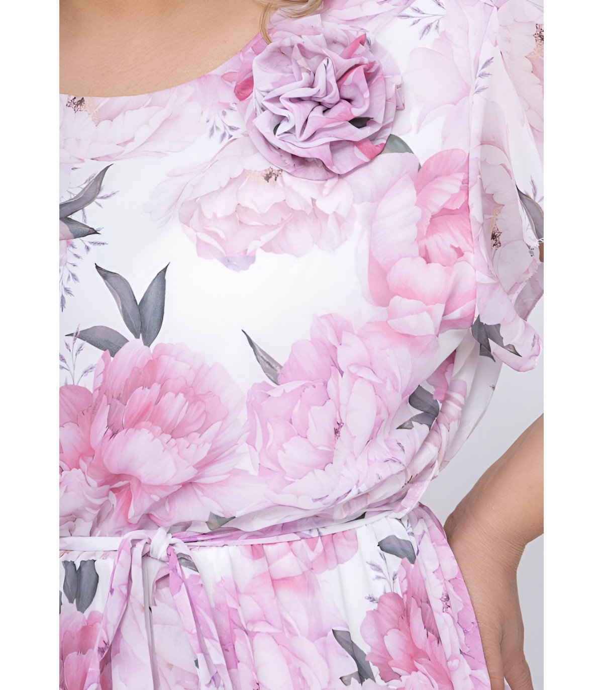 - Näyttävä kukkakoriste rinnassa tuo lisänäyttävyyttä mekkoon.