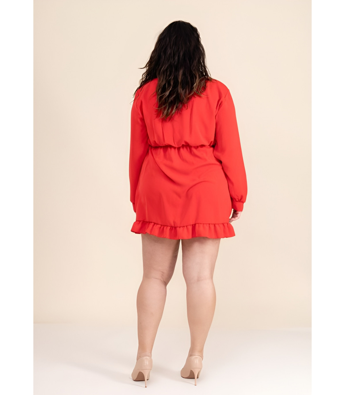 Kazaka punainen pitkähihainen minimekko plus koossa - naisellinen muodokkaan naisen mekko/tunika