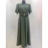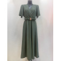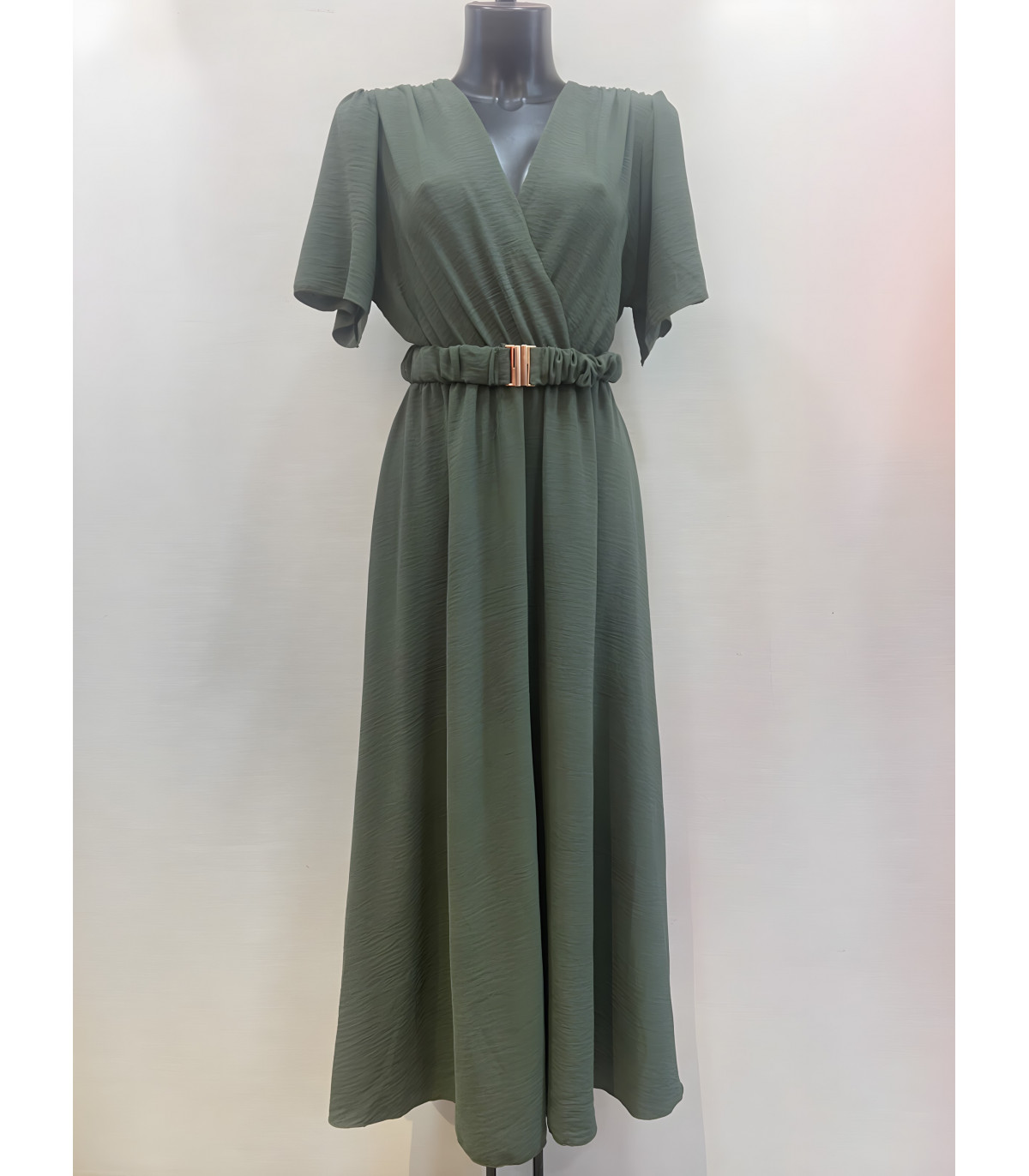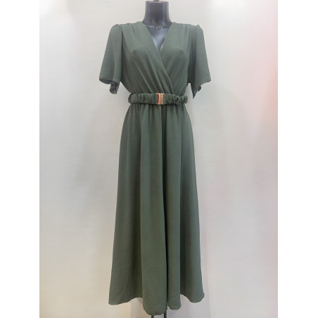Mily khaki lyhythihainen v-maksimekko vyöllä (plus size)