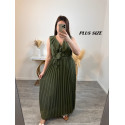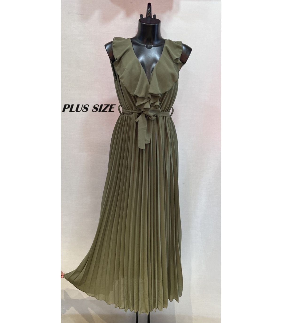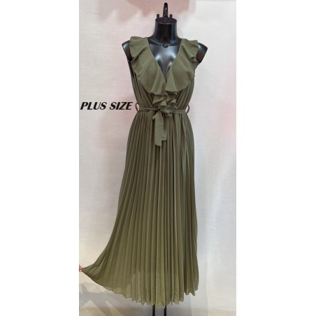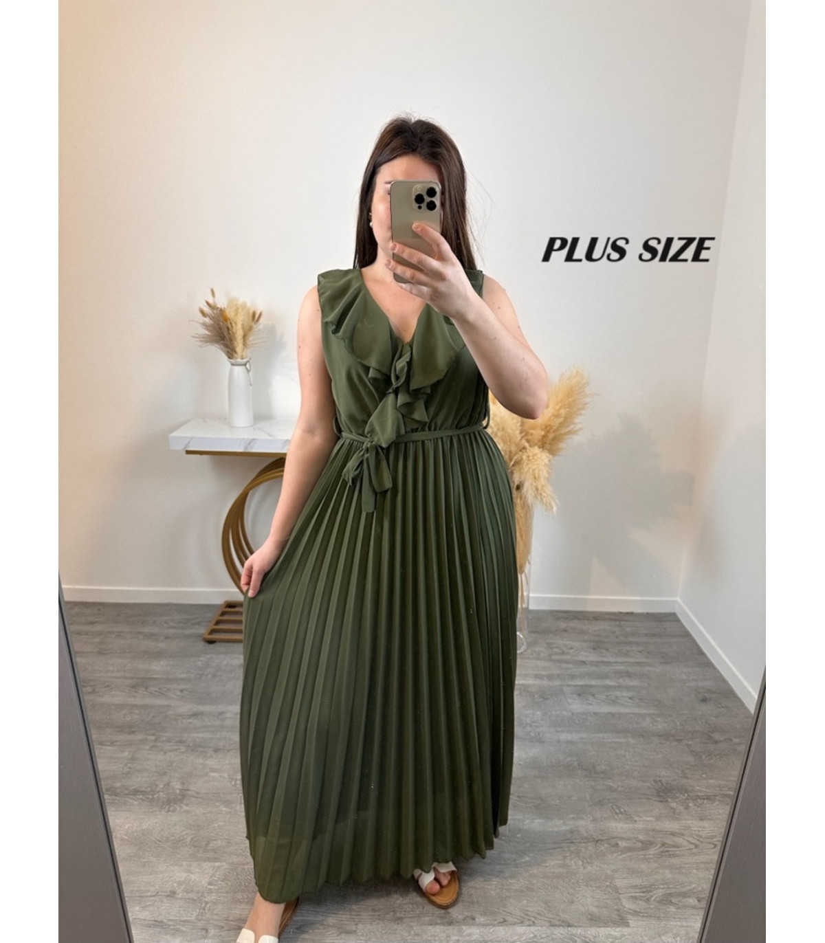 Mily khakinvihreä pitkä vekkimekko röyhelöllä (plus size)