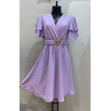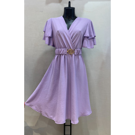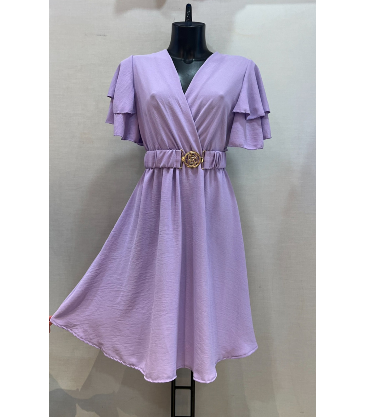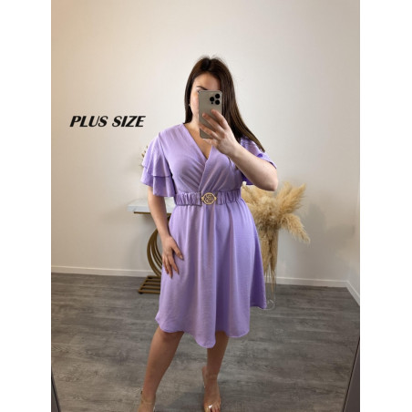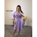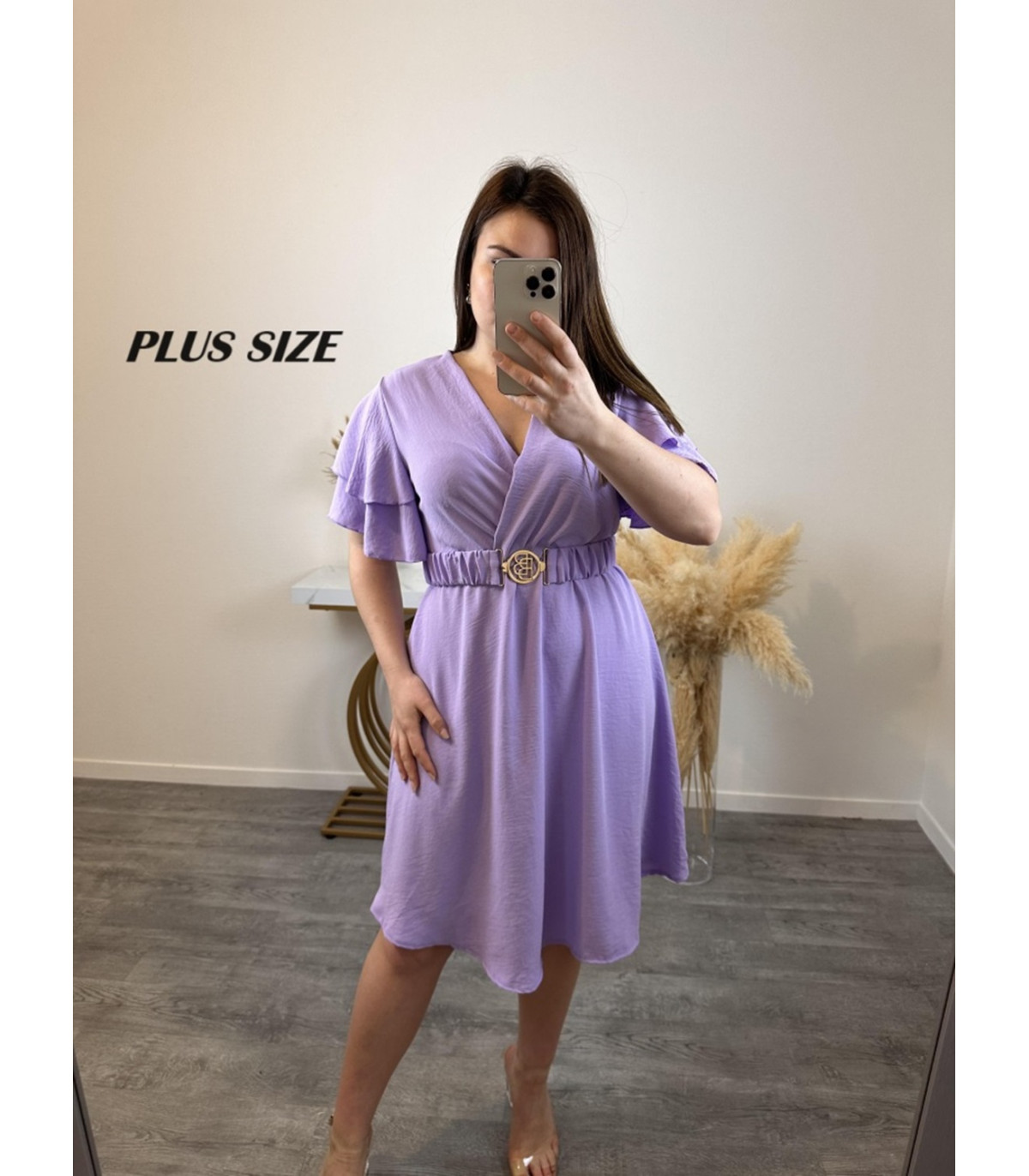 Mily lila lyhythihainen v-mekko vyöllä (plus size)