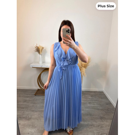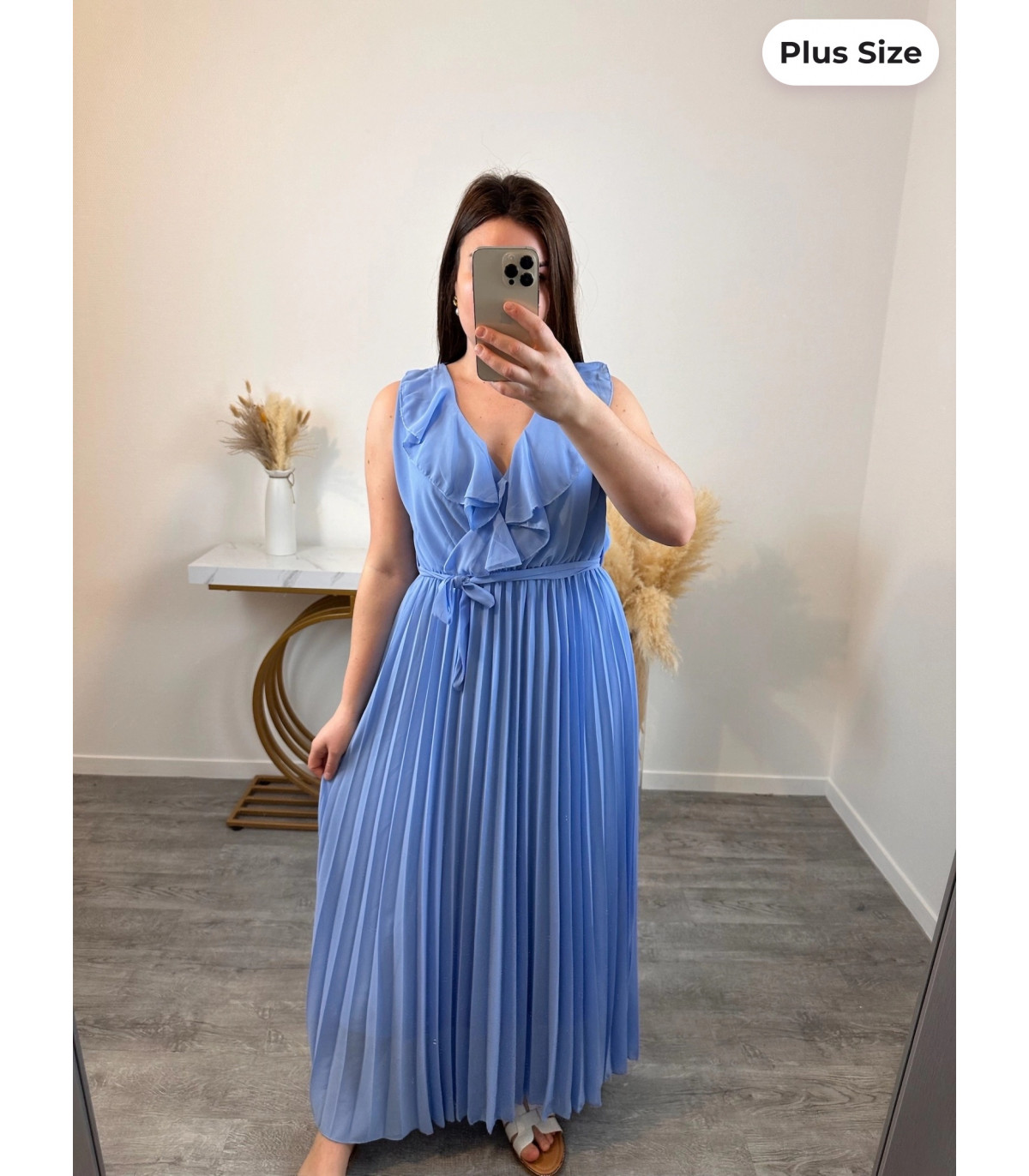 Plus de details Valittu koko loppu varastostaMily vaaleansininen pitkä vekkimekko röyhelöllä (plus size)