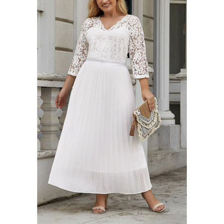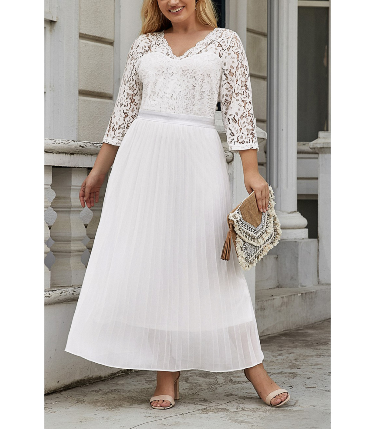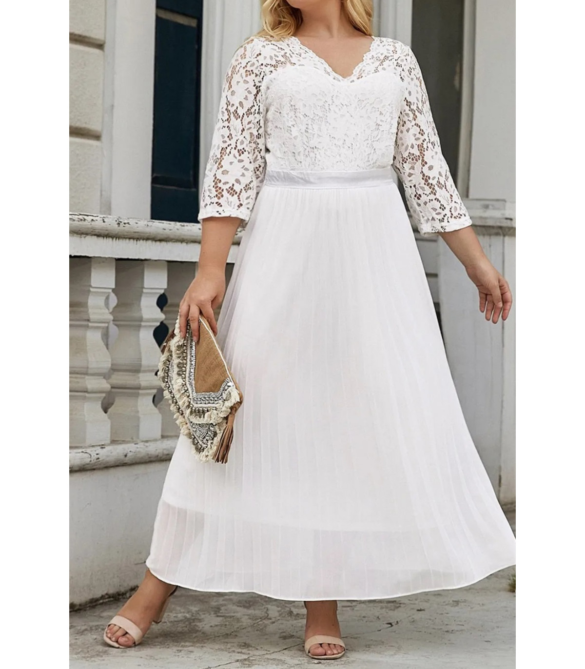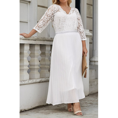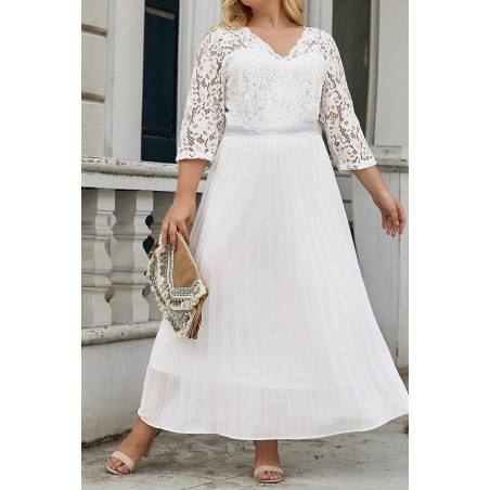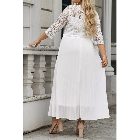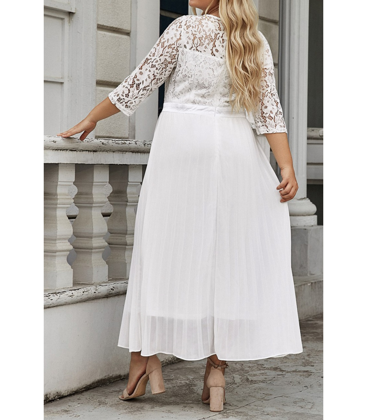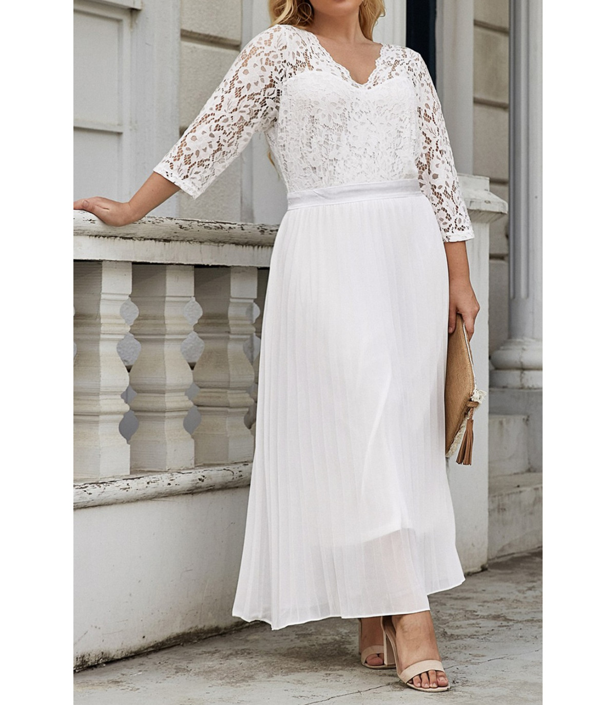 Valkoinen pitsikoristeinen vekkijuhlamekko (plus size)
