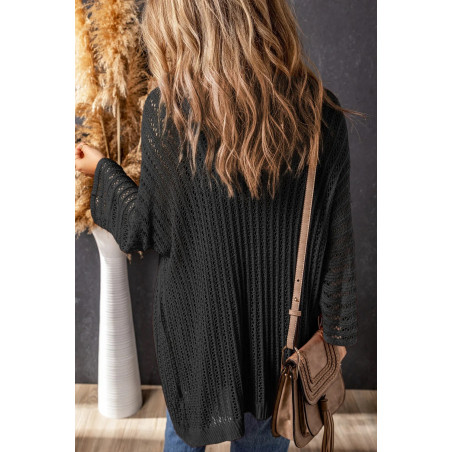 Musta avonainen virkattu neuletakki/kimono. Tämä kaunis neuletakki/kimono on monikäyttöinen vaate, joka sopii osaksi erilaisia asukokonaisuuksia; se sopii kesällä rantatyyliin uima-asun suojaksi sekä esimerkiksi farkkushortsien kanssa täydentämään kesätyyliin ja tuomaan lämpöä viileneviin iltoihin. Voit myös käyttää sitä neuletakkina ympäri vuoden. Musta kimono on täydellinen rantalookiin - näyttäen upealta kaikenväristen vaatteiden kanssa. Musta neuletakki on helppo yhdistää erilaisiin asukokonaisuuksiin.