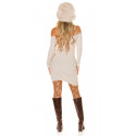 Koucla beige off-shoulder ribbineulemekko kurkistusaukolla