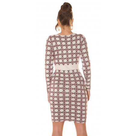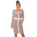 Plus de details Älä mieti liian pitkään - viimeinen kappale varastossa!Beige printtikuvioinen neulemekko napeilla