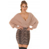 Cappuccinomusta lepakkohihainen v-neulemekko printillä