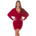 Plus de details Valittu koko loppu varastostaPunainen wrap-look v-neulemekko lepakkohihoilla ja vyöllä