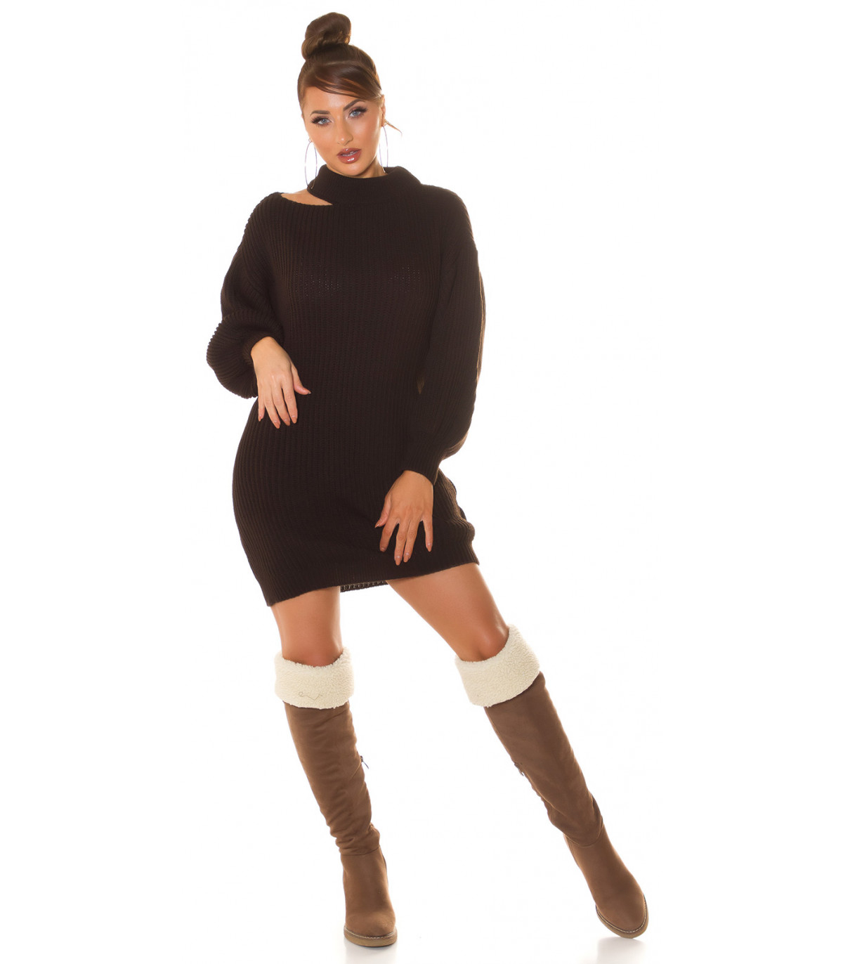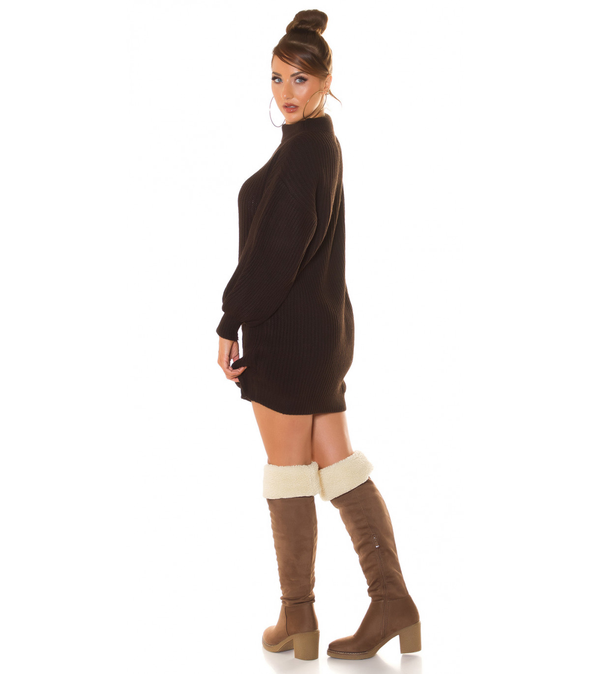 Ruskea muhkea villamekko kaulahalkiolla