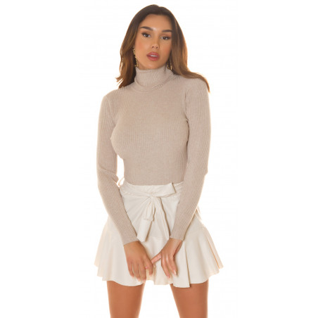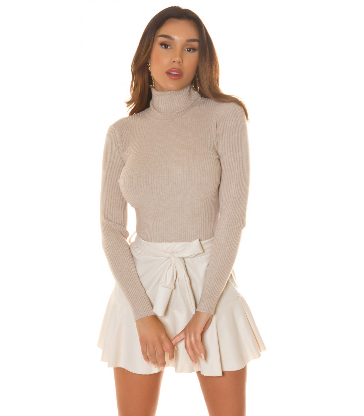 Tyylikäs cappuccino pitkähihainen korkeakauluksinen neulepaita - yksinkertainen ja tyylikäs naisten neulepaita