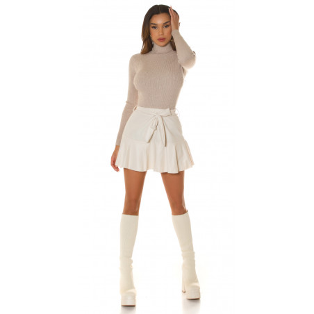 Monikäyttöinen pitkähihainen vaalea basic neule korkealla kauluksella on täydellinen lisäys tyylikkään naisen vaatekaappiin. Sen yksinkertaisen tyylikäs tyyli ja mukava istuvuus takaavat, että näytät hyvältä sekä tunnet olosi miellyttäväksi. Tuo tyylikkyyttä ja charmia tyyliisi!