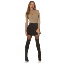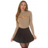 Ihanan joustava neulemateriaali yhdistettynä kauniisiin kohokuviointeihin sekä kurkistusaukkoon tekee tästä vaatteesta sekä mukavan että näyttävän. Pitkähihainen kurkistusaukollinen vaaleanruskea neule on riittävän yksinkertainen arkikäyttöön, mutta näyttävien yksityiskohtiensa vuoksi sopii loistavasti myös treffeille ja illanistujaisiin. Täydellinen neule syksyyn ja talveen!