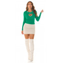 Vihreä strassiniittikoristeinen neule sydänkurkistusaukolla