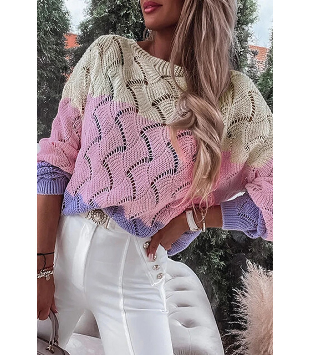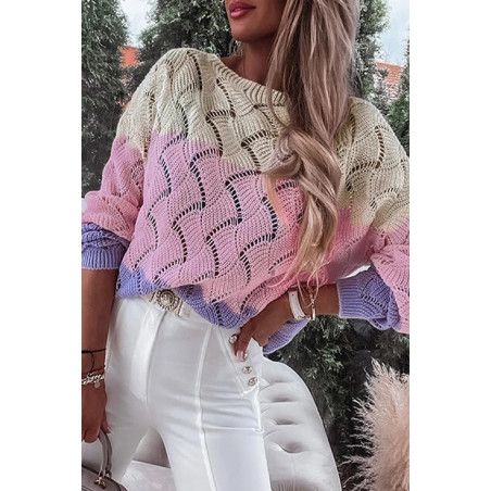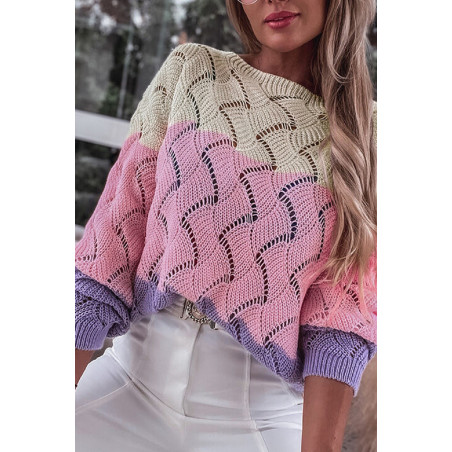 Kolmevärinen vaaleanpunainen väljä villapaita