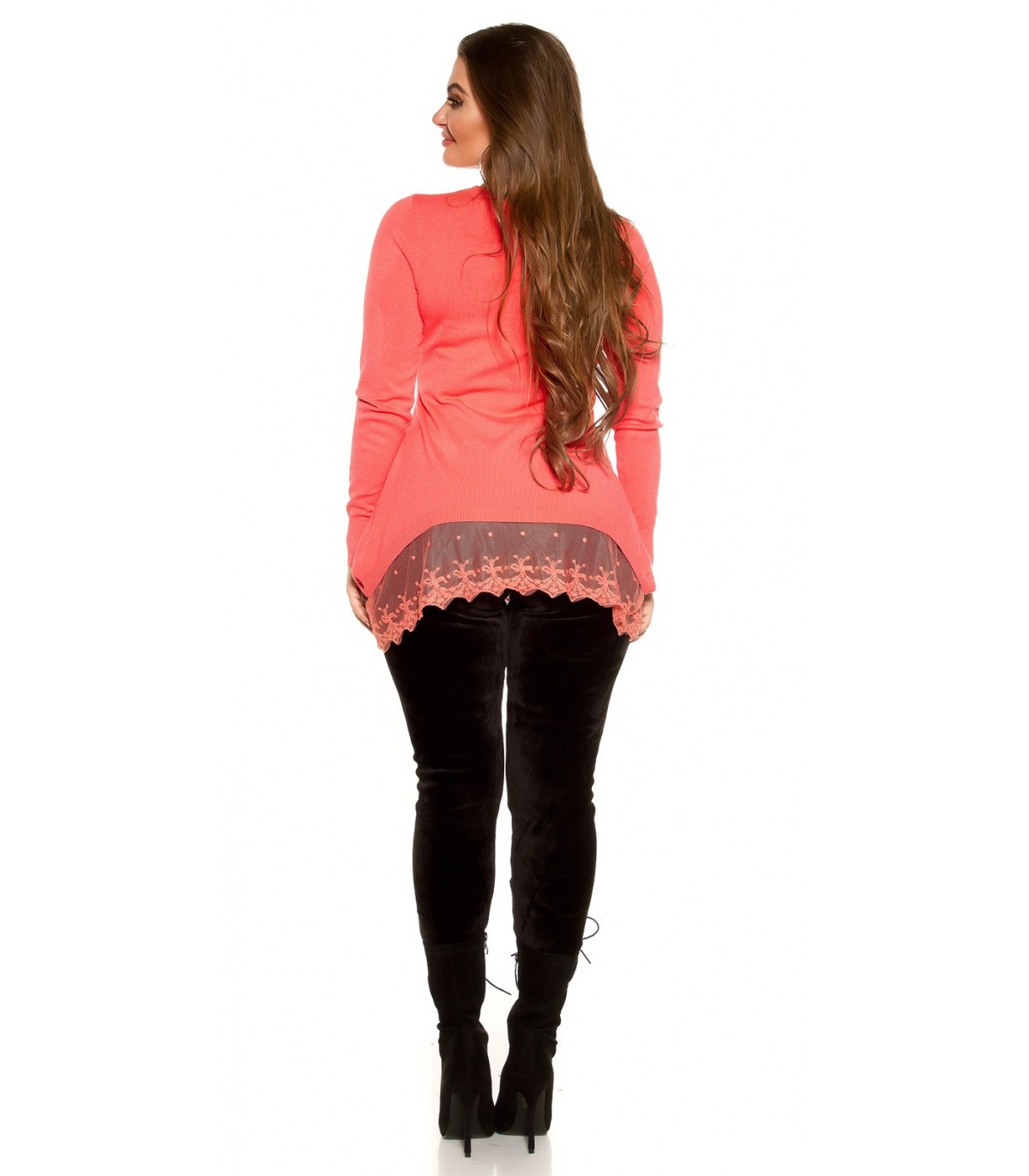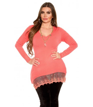 Plus de details Älä mieti liian pitkään - viimeinen kappale varastossa!Curvy Girls Size Koucla koralli neule pitsillä ja korulla [LÖYTÖ]