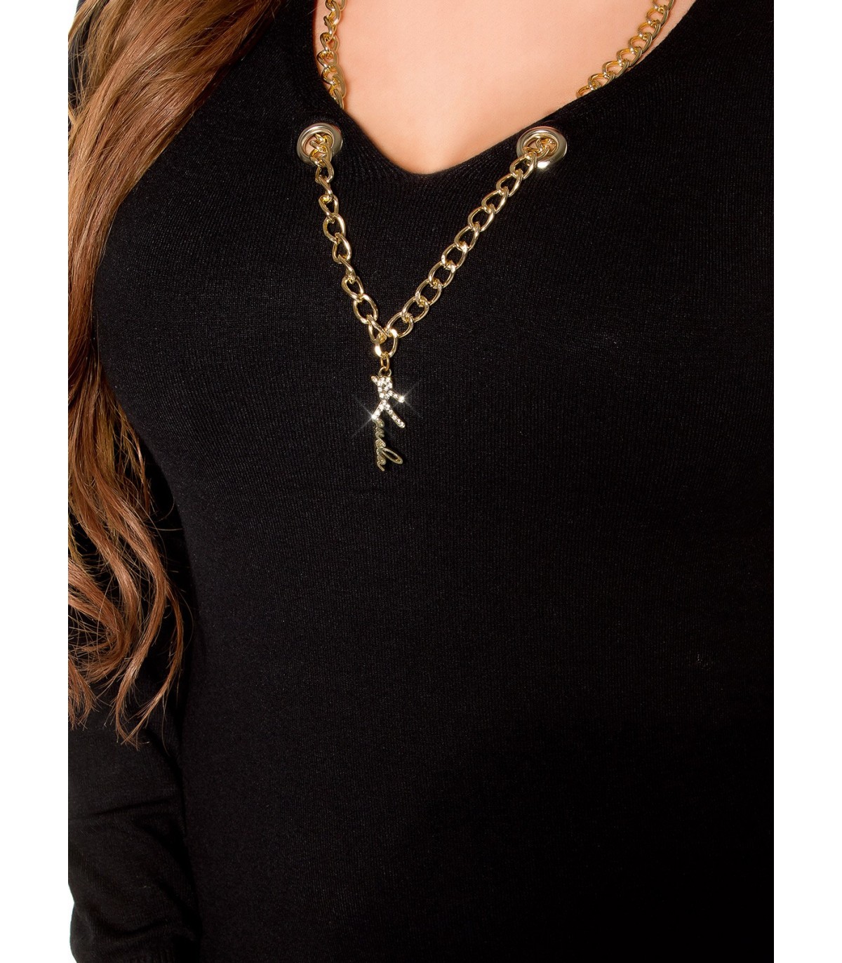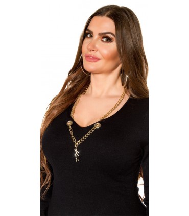 Kaunis ja pirteän värinen neule ja kiva kaulaketju mukana. Oli vaan aika vartalonmyötäinen minulle.