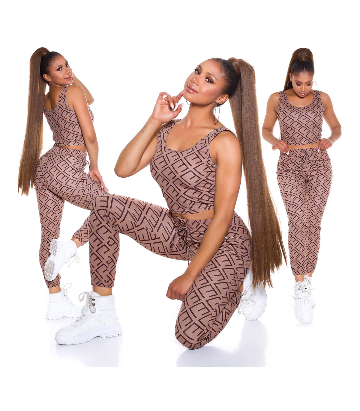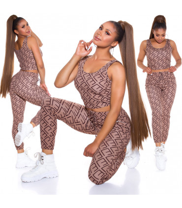 Cappuccino crop top printtikuvioinen joggerisetti