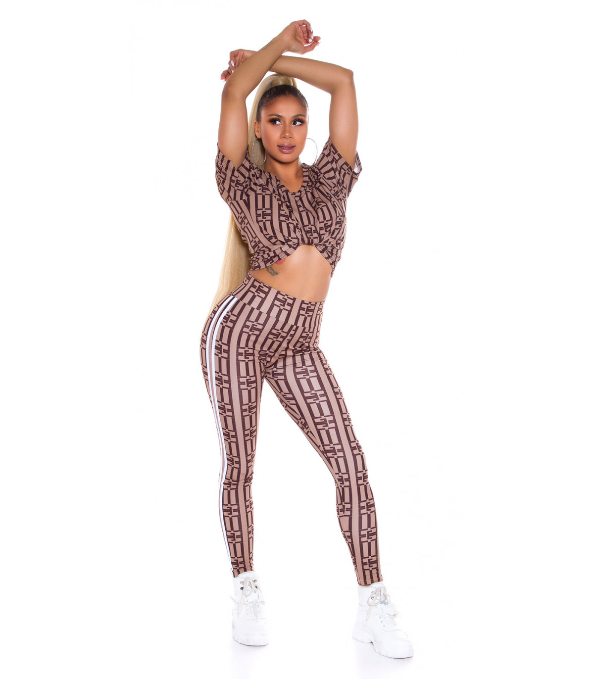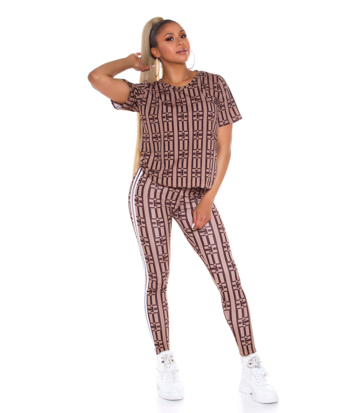Cappuccino lyhythihainen printtikuvioinen joggerisetti raidoilla