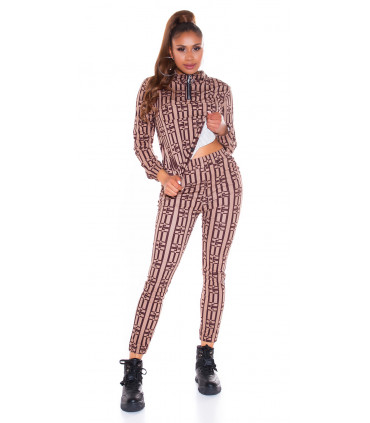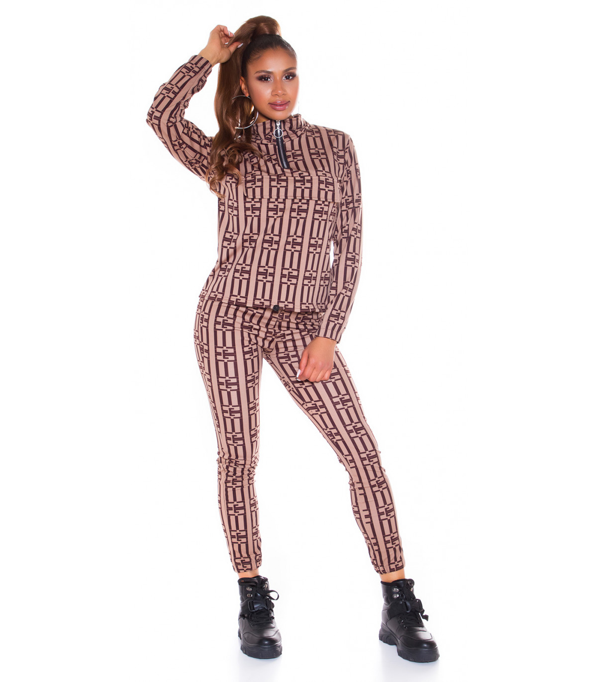 Cappuccino printtikuvioinen joggerisetti vetoketjulla