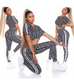 Musta lyhythihainen printtikuvioinen joggerisetti raidoilla