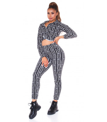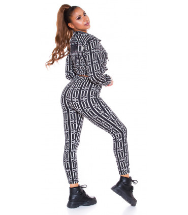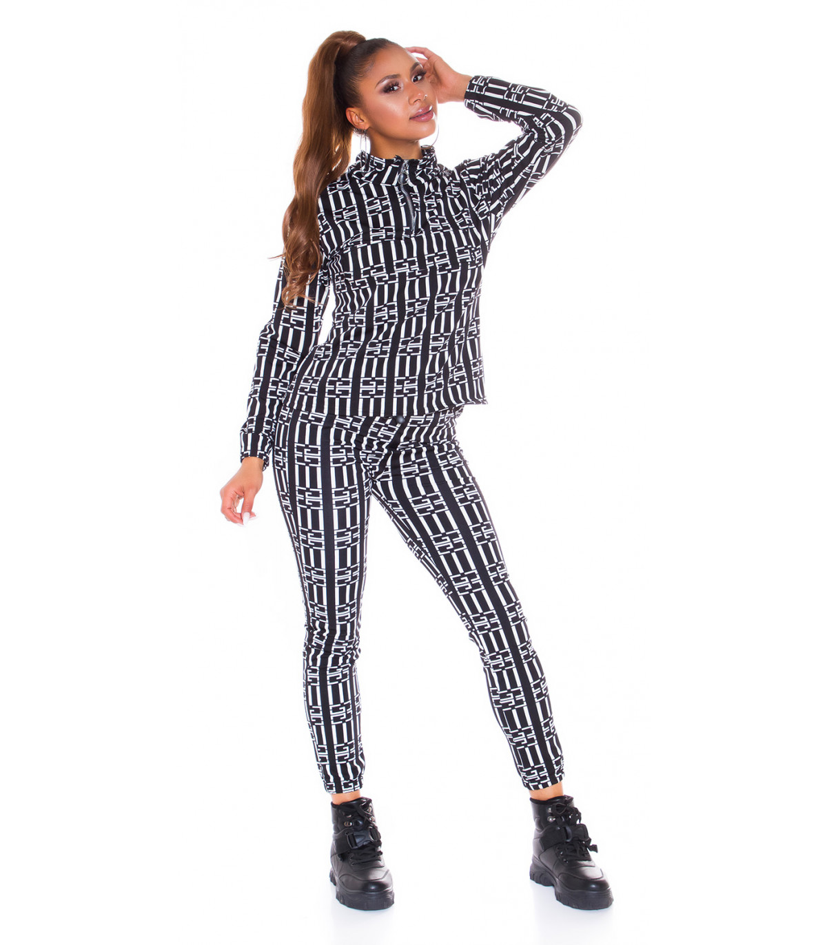 Musta printtikuvioinen joggerisetti vetoketjulla
