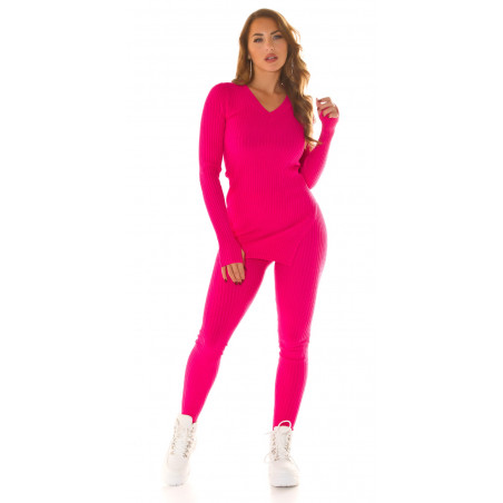 Pinkki oloasusetti: neule ja leggingsit