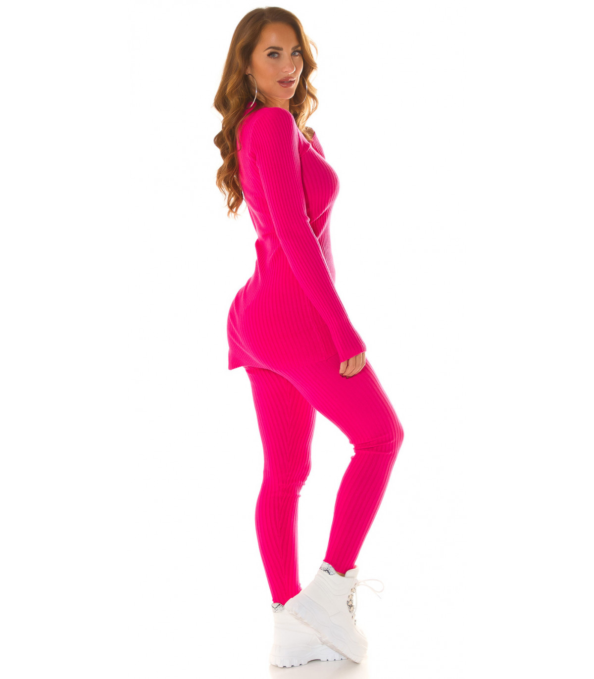 Ihana pinkki neule ja yhteensopivat leggingsit - mukava ja tyylikäs kotiasu