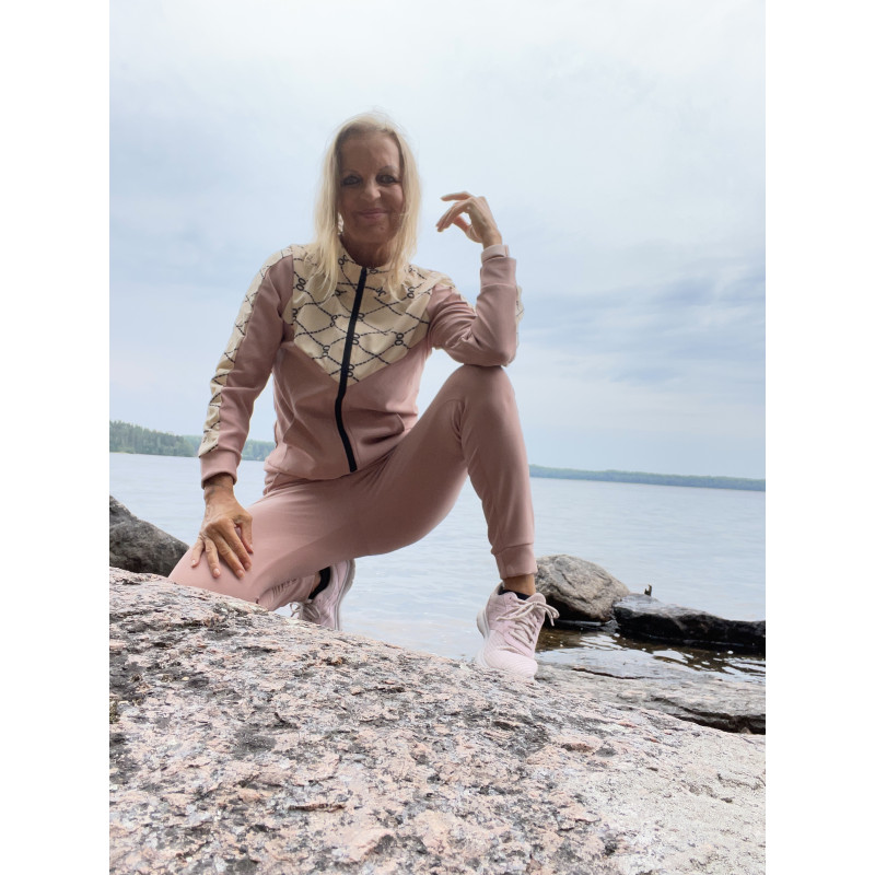 Vaaleanpunainen xo printtikuvioinen joggerisetti