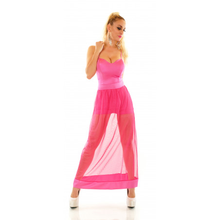 Pinkki playsuitmekko mesh-helmalla