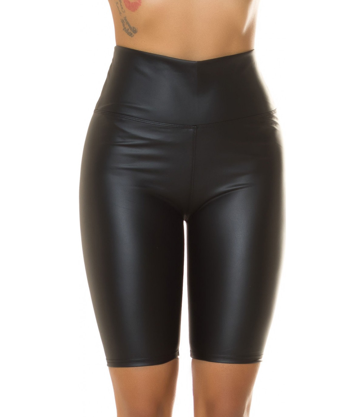 Mustat korkeavyötäröiset tekonahkaiset biker-shortsit