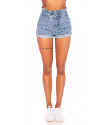 Siniset paperipussivyötäröiset farkkushortsit [LÖYTÖ]