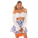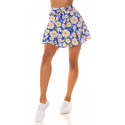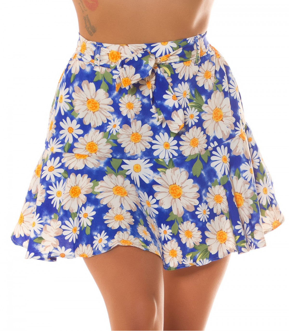 Sininen auringonkukkakuvioinen shortsihame vyöllä