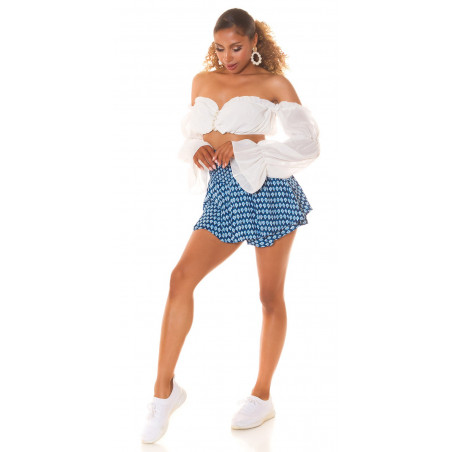 Sininen printtikuvioinen korkeavyötäröinen shortsihame