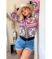 Hiukan pienempää mitoitusta eikä juurikaan jousta. Takki on silti tosi kiva, ja kuosi pirteä.