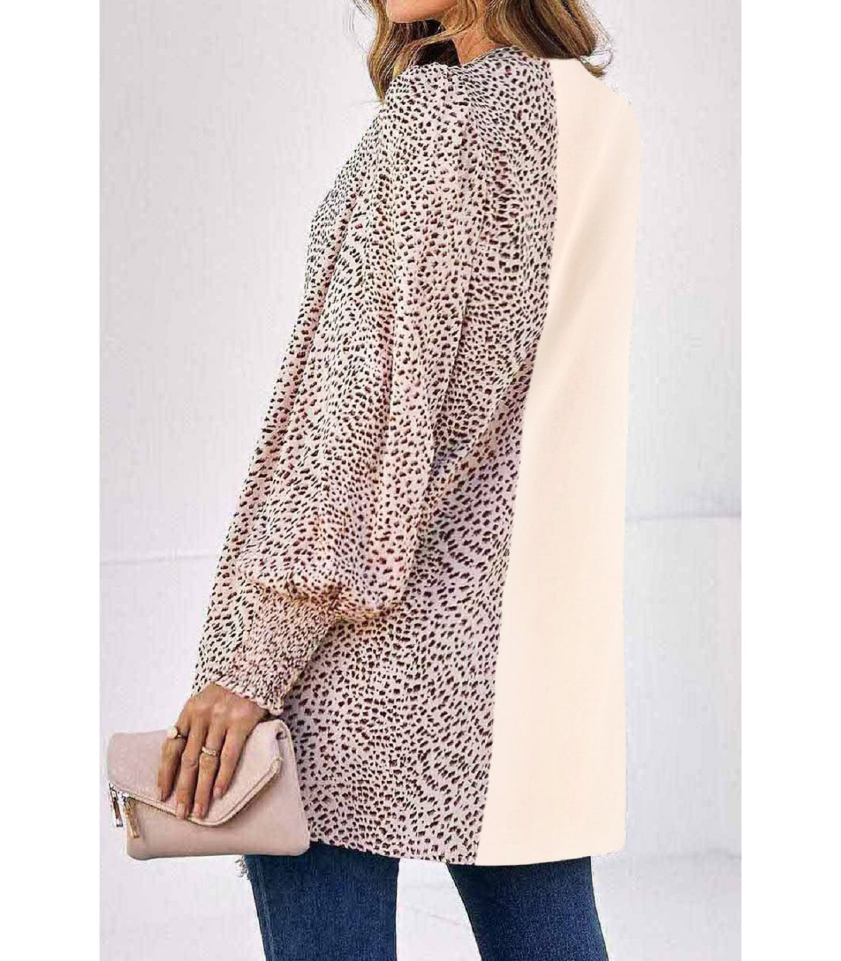 Khaki/leopardikuvioinen pussihihainen neuletakki