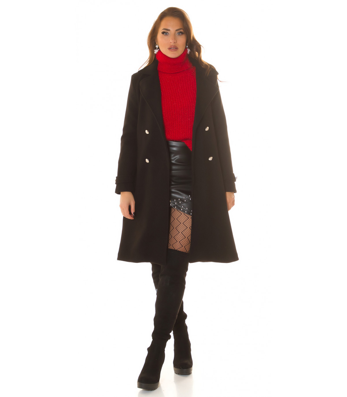 - Kauniit nappikoristeet ja hihasoljet tuovat takkiin näyttävyyttä.