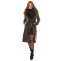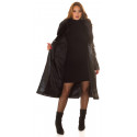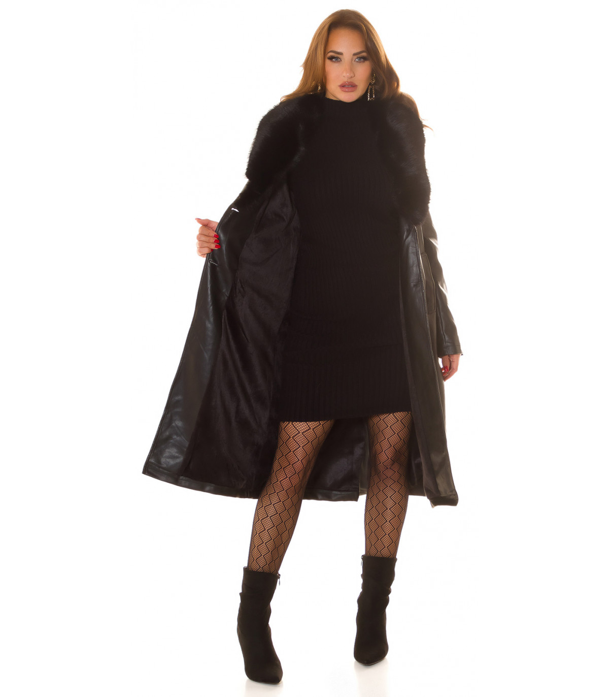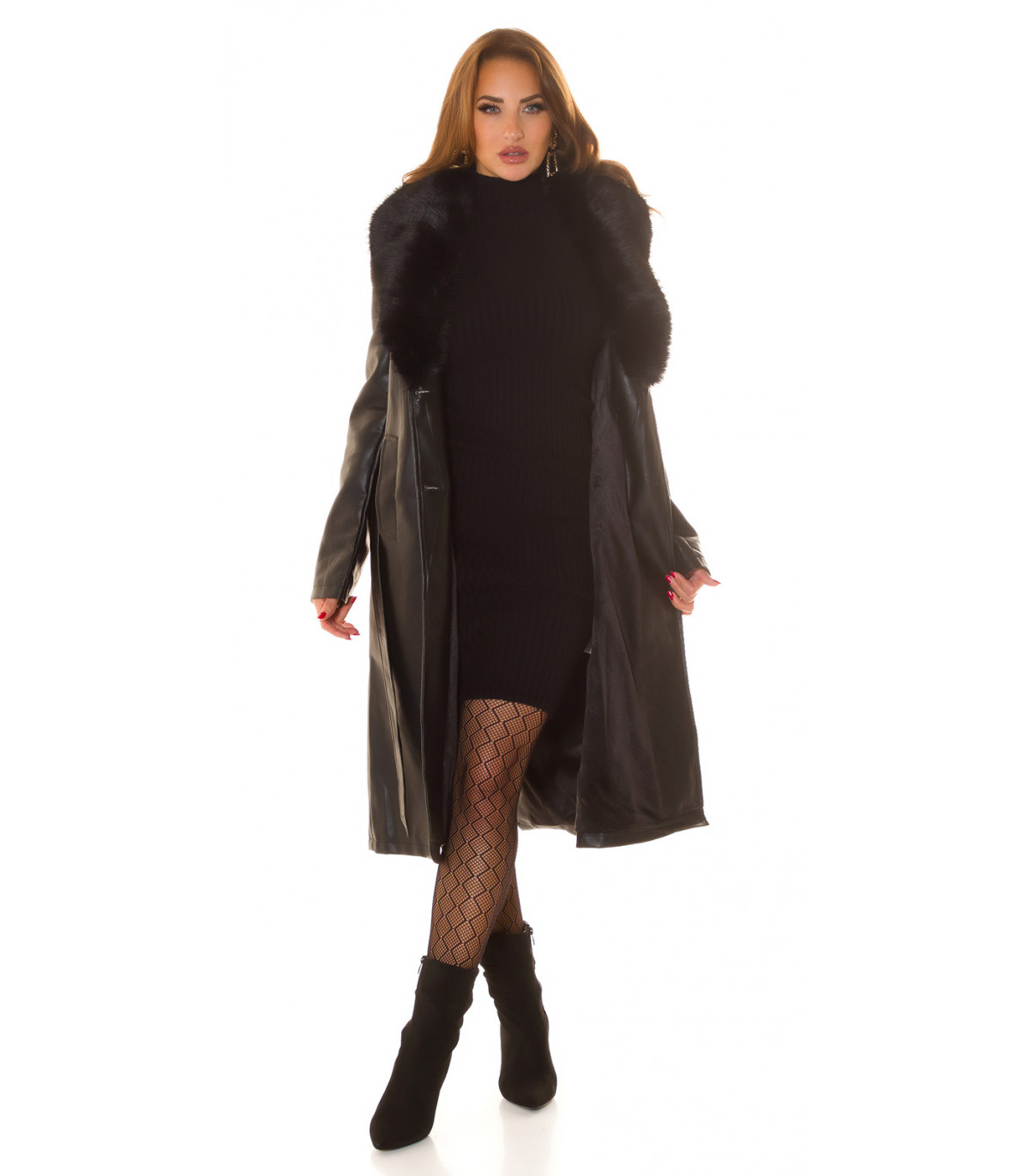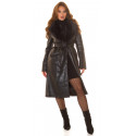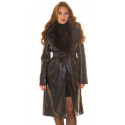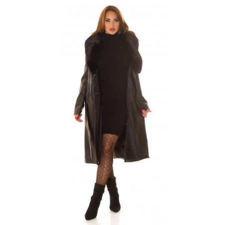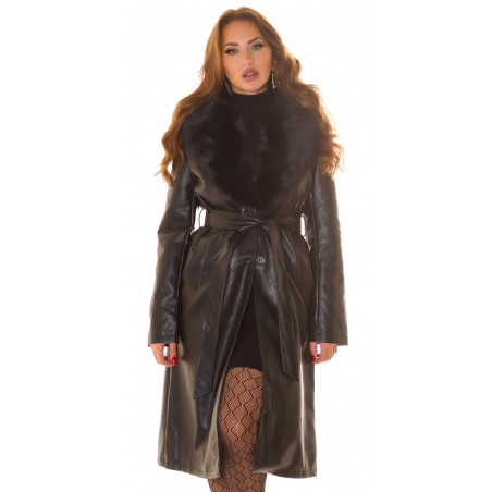Musta tekonahkainen talvitakki tekoturkiksella