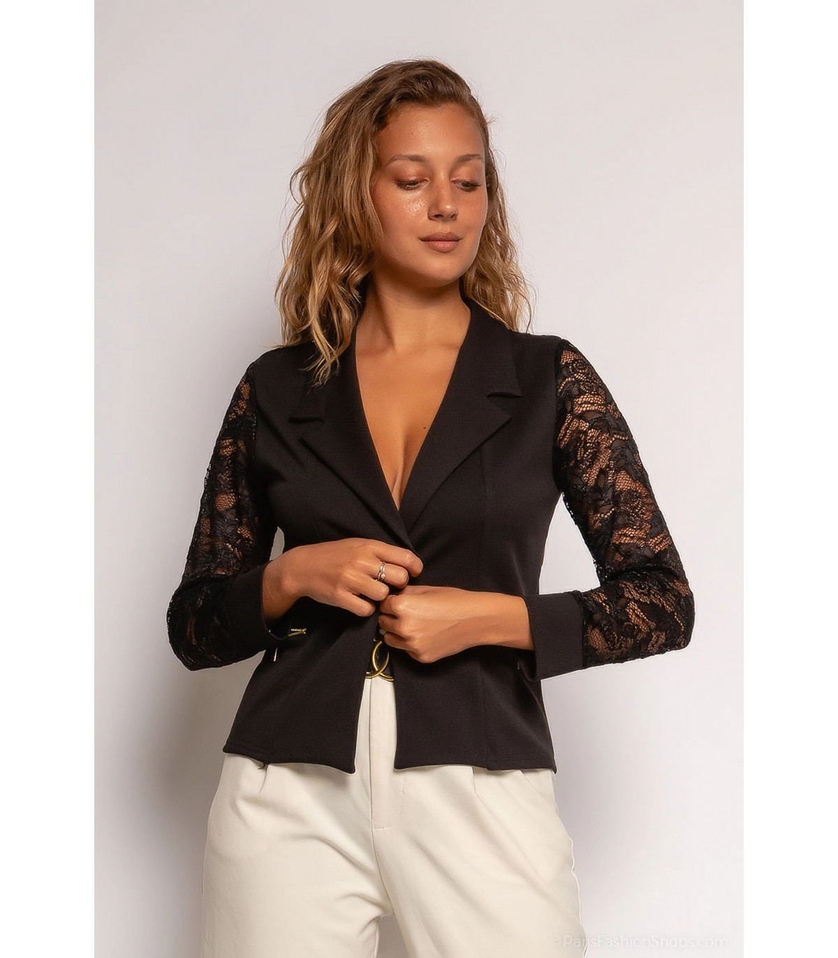 Upea musta pitsihihainen jakku on täydellinen lisä jokaisen tyylitietoisen naisen vaatekaappiin. Sen hienostunut tyyli, mukava istuvuus ja monikäyttöisyys takaavat, että löydät sille käyttöä monissa eri tilanteissa. Tuo ripaus pariisilaista charmia ja eleganssia tyyliisi!