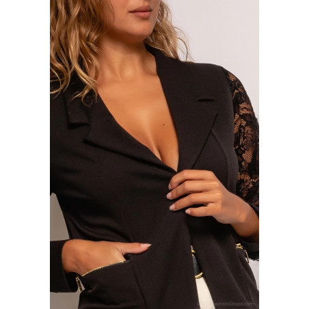 Upea musta pitsikoristeinen bleiseri vetoketjukoristeilla - elegantti vaate moneen eri tilanteeseen
