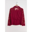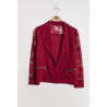 Tyylikäs viininpunainen bleiseri pitsihihoilla yhdistää mukavuuden ja hienostuneen tyylin. Tämä Ranskassa valmistettu ajaton bleiseri tuo asukokonaisuuteesi ripauksen pariisilaista eleganssia ja naisellisuutta. Näyttävät yksityiskohdat antavat tyylikkääseen vaatteeseen persoonallisen vivahteen.