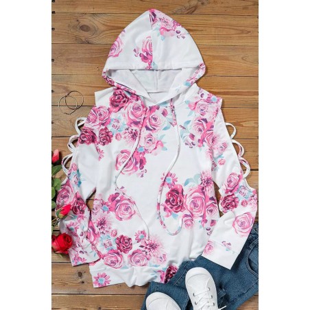 Valkoinen ruusukuvioinen huppari ristikkohihoilla