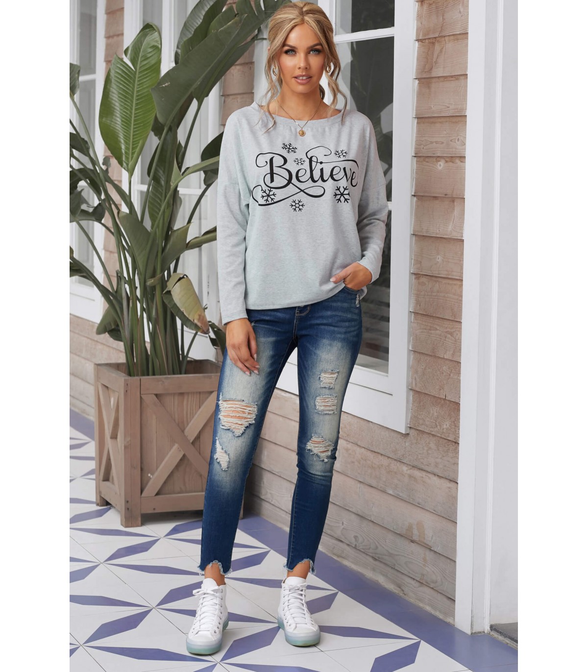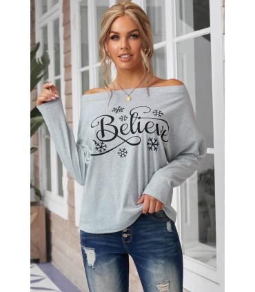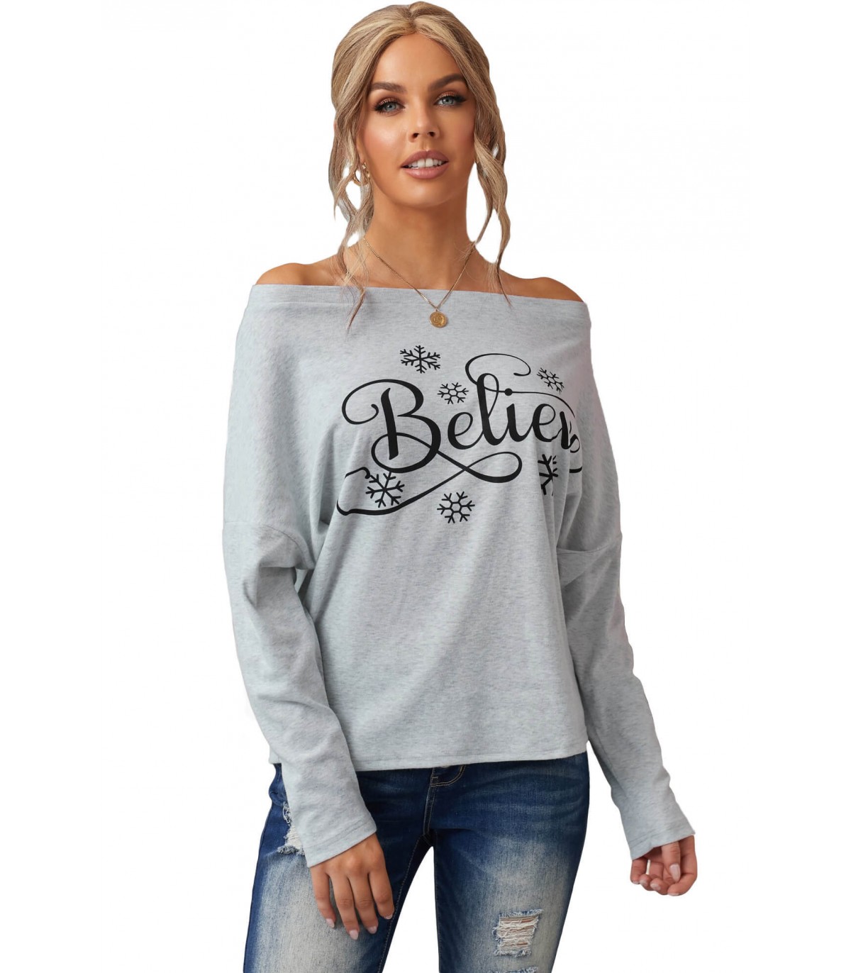Harmaa Believe paita lumihiutaleilla [LÖYTÖ]