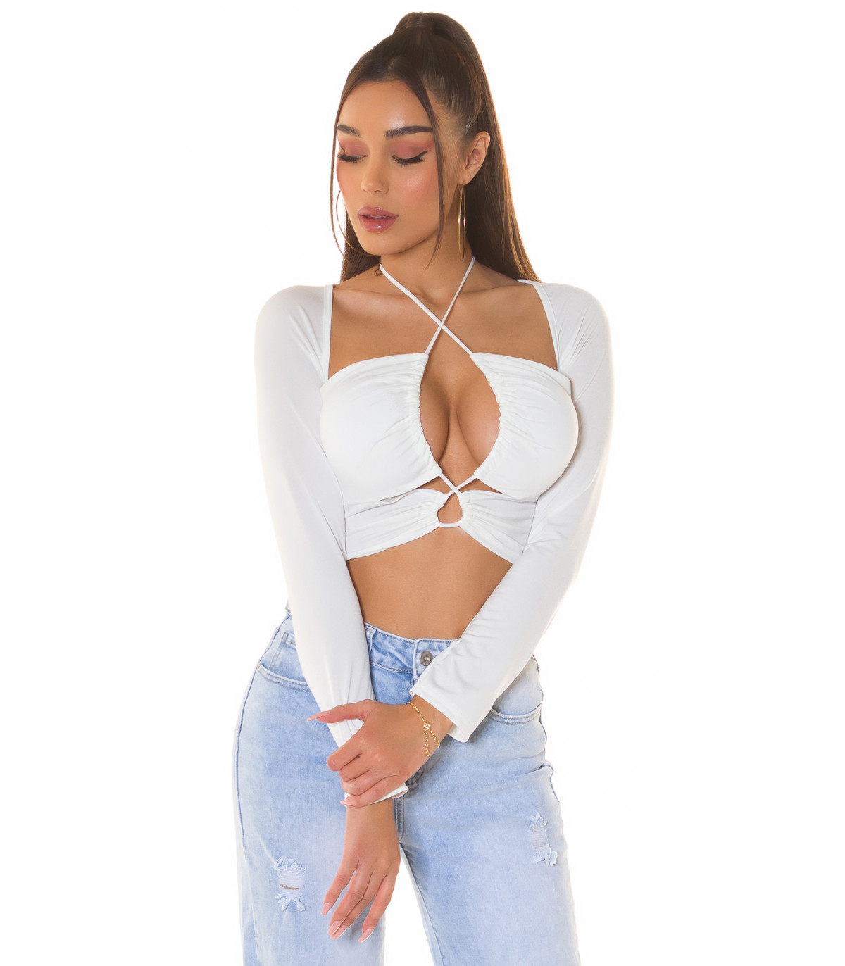 Koucla valkoinen pitkähihainen multiway lyhyt paita