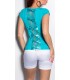 Turkoosi lyhythihainen t-paita näyttävillä yksityiskohdilla. Ketjuvyö EI sisälly tuotteeseen. Käsinpesu.