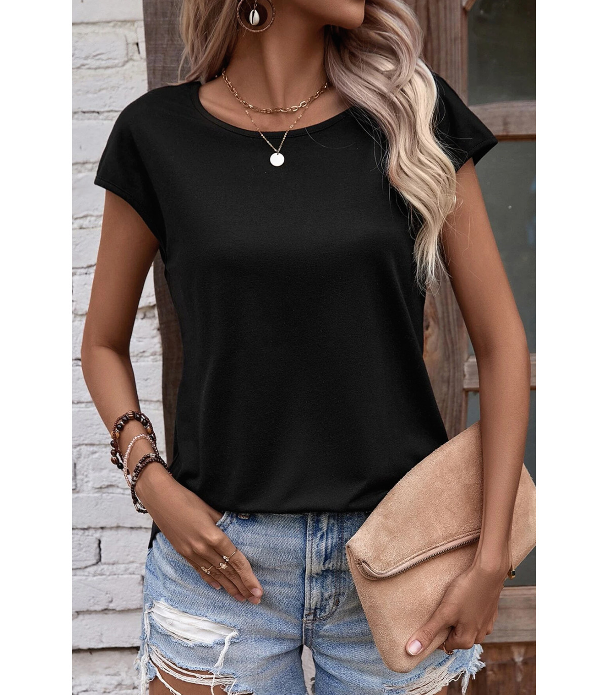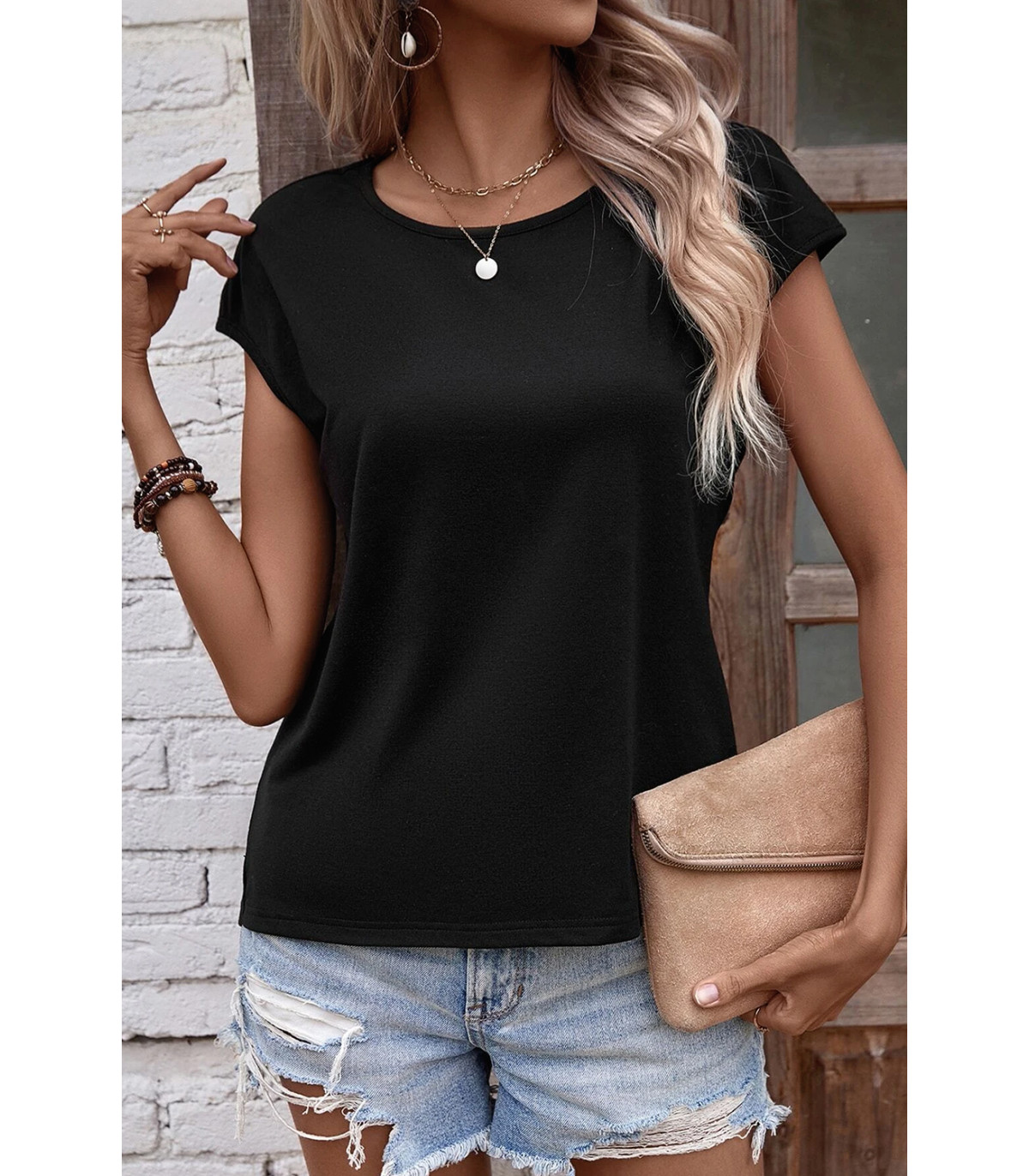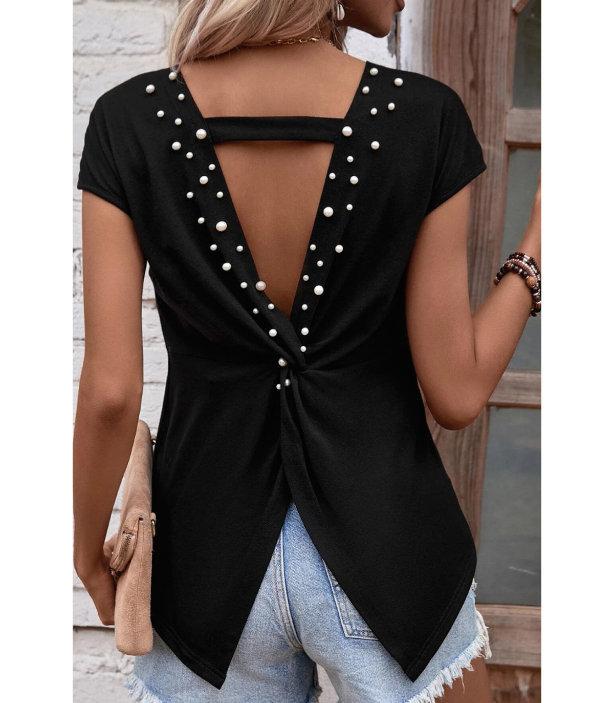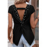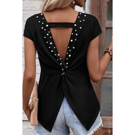 Musta avoselkäinen paita helmikoristeilla