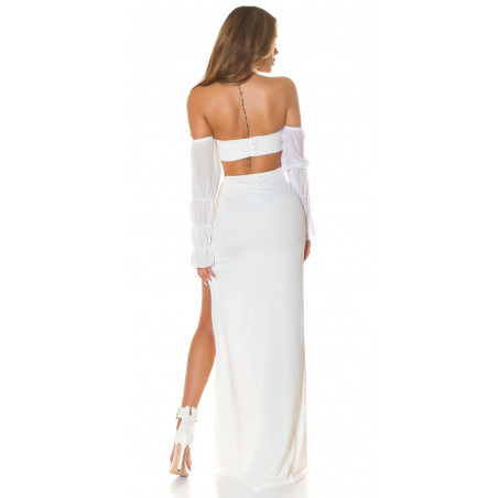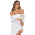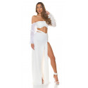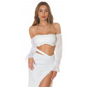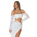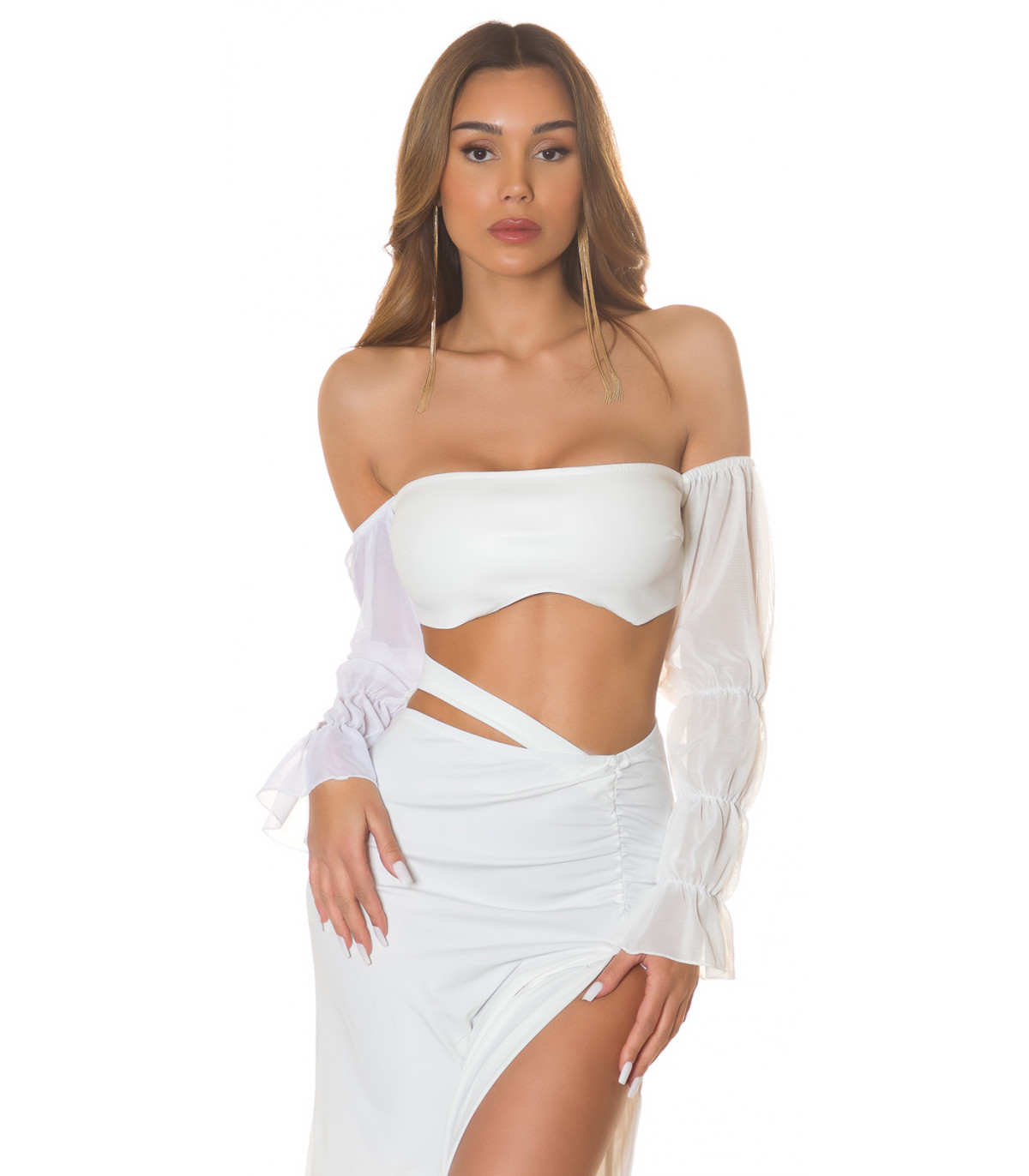 Koucla valkoinen pitkähihainen tekonahkainen latinapaita