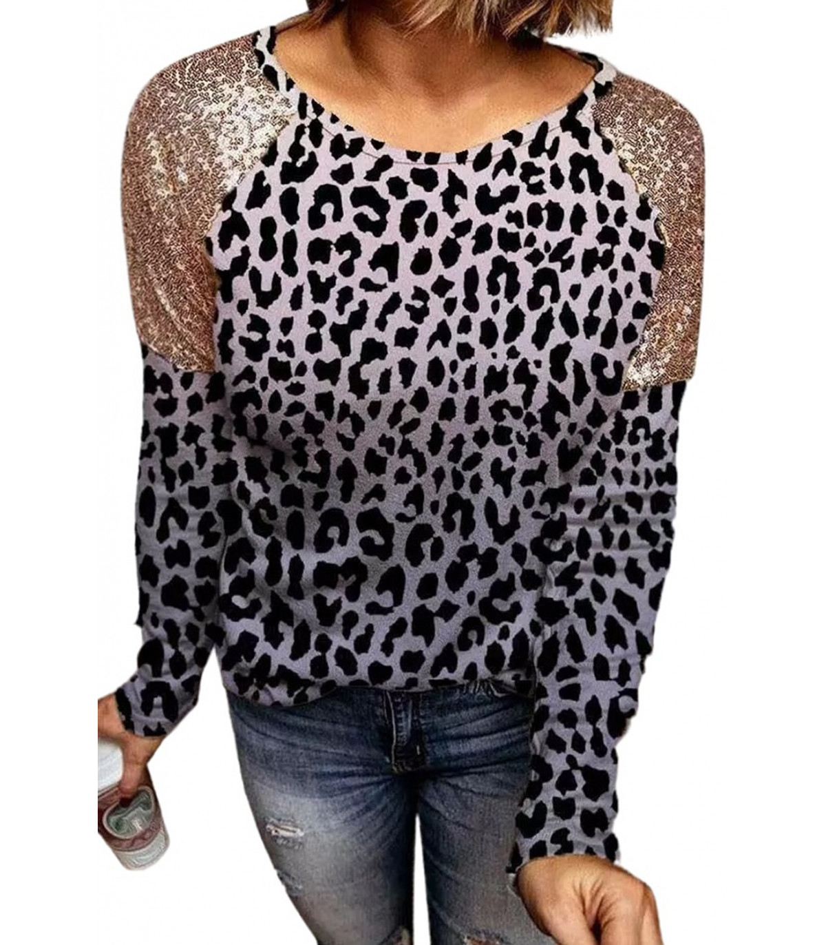 Leopardikuvioinen paljettikoristeinen paita