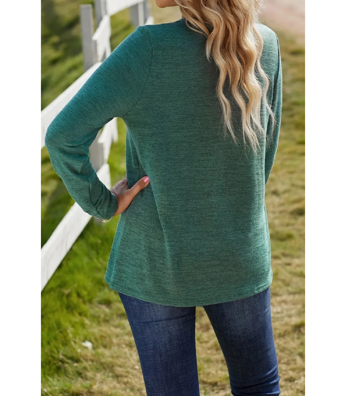 Vihreä pitkähihainen ristikkokoristeinen paita