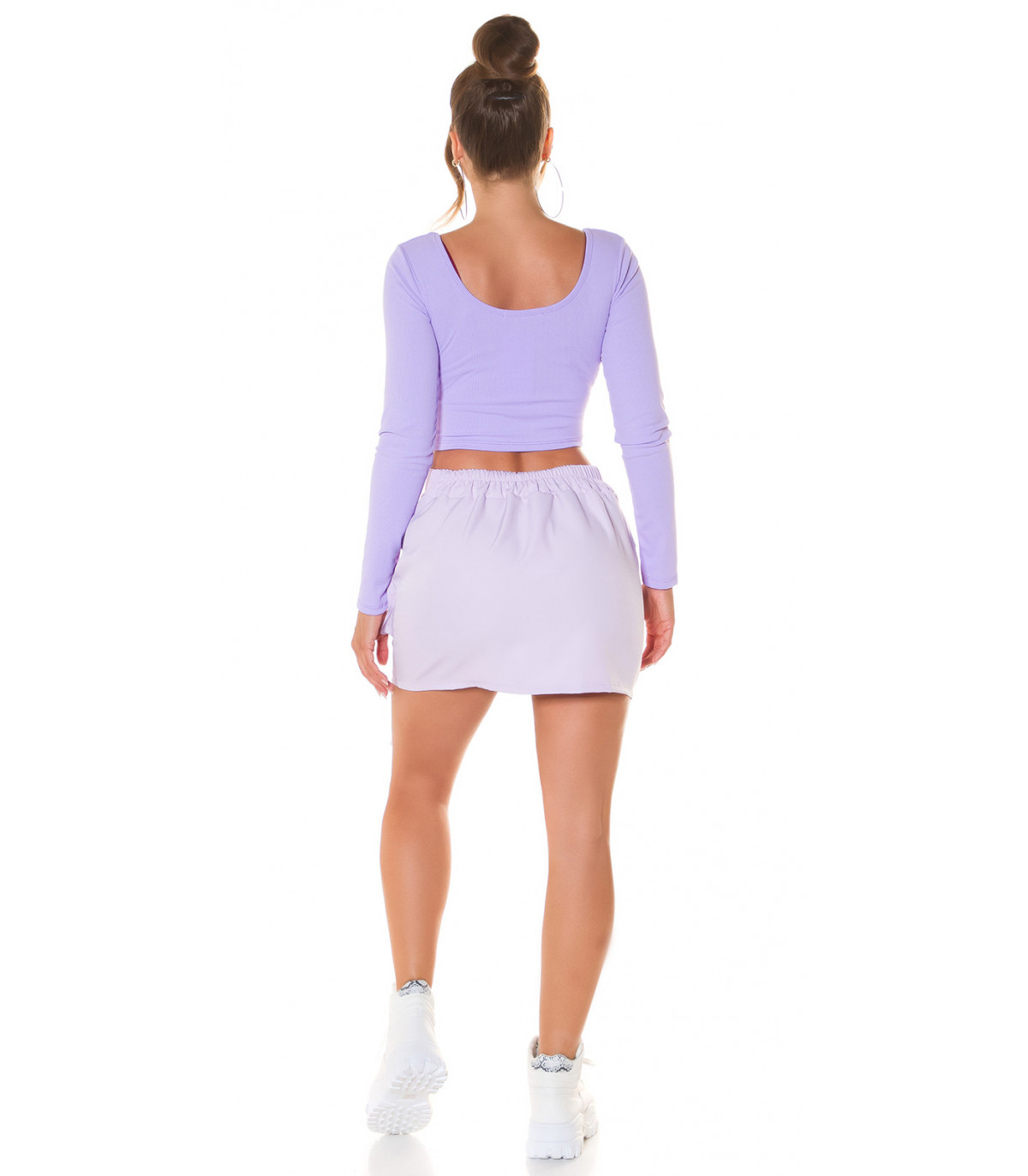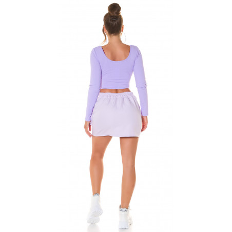 Koucla lila pitkähihainen lyhyt v-ribbipaita